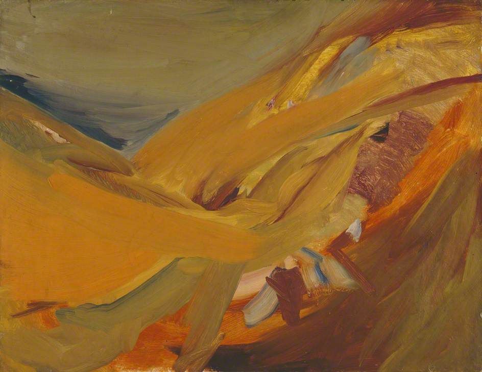 The viewer remakes the appetite through the marks of the painting: strokes, rhythmic flows and shapings, dabs that are physical gestures of the body and feelings. Of the picture of Bomberg’s I show immediately above he says: