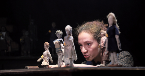The role of dolls in performance will enable directors and stage designers to play games of scale. Characters often use dolls in order to create the effect of an encounter or interaction between cast members or to create a static scenario. This production chooses dolls which are small and easily set aside. Again the effect is to play out the disposability with which the real characters must come to identify. This is captured in the still below (from a perspective no actual audience member could have of course had had) of Stepanie played heart-rendingly by Gemma Barnett.