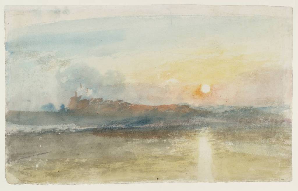 Bamburgh Castle, c. 1837, Watercolour on paper 487 x 612 mm. Source: https://www.tate.org.uk/art/artworks/turner-bamburgh-castle-northumberland-d25457