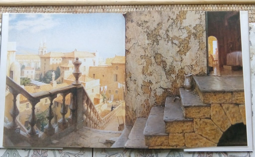 In each case here the artist employs a complex multi-perspective approach that draws out the strangeness of things, whether it be the spaces or the objects and their shadows in that space. We will return to look at some in more detail, after considering the novel, especially Julian Bell’s fantasy recreation of the palace at Donnafugata with its close reference to both the narrative and moods of the novel. All the artists concern themselves with frames within that of the picture itself, such as margins, doors, windows or drawn lines around patches of colour. In every example there is much reflexive play with the realities that might be presumed to be conveyed as if they were more easily approached through an external shaping of form rather than an internal essence. I think that this reflects my current reading of the novel. I’d now say that it only fails to capture the historical and geographical reality of Sicily because history and geography is not the space it seeks to fill.