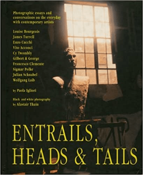 Questo grande dolore mi portò ad un’instancabile ed inarrestabile esplorazione di quella terra incognita da cui scaturisce la sorgente dell’ispirazione. Però, solo dopo aver realizzato il libro – il mio lavoro procede sempre in modo organico, non so mai dove va a finire – capii che allora era stata una necessità, per me, entrare nella quotidianità degli artisti. Il titolo è altrettanto significativo: in italiano vuol dire viscere, teste e code. Volevo affrontare le pulsioni creative, la visceralità, la sessualità, la mente e il cuore. Cercavo di capire se la creatività e la distruttività devono andare necessariamente mano nella mano, oppure no.[3]