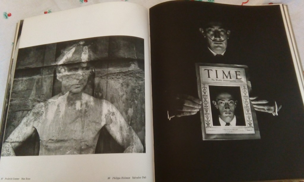 Dali himself commented on Halsman’s portrait. The portrait utilises the word ‘Time’ which fortuitously separates two portraits of his own ‘famous’ face, and particularly his increasingly famous moustache, from two separate points of his career. Man Ray’s take on Dali of 1930 (published in the 1936 edition of Time shown here) is inset in Halsman’s 1954 portrait. Dali saw the 1954 picture as a whole as depicting changes over time in both himself and his artistic aspiration. The latter is symbolised in changes in the curation of his aging face. He was 29 in Ray’s portrait, but: ‘Since then the world has shrunk considerably, while my moustache, like the power of the imagination, continued to grow’.[18]