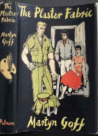 Look for instance at Minton’s dust jacket illustration for queer novels, notably The Plaster Fabric (1957) by Martyn Goff. Minton’s draft design for this cover, once owned by the queer television art critic, Brian Sewell, distinguishes Goff’s working-class guardsman, Tom Beeson, from the queer art student character, Laurie Kingston, by prominent comparison of their hands: