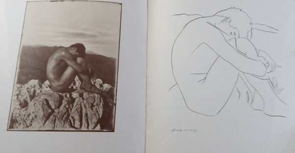 It is important that the language of abstract classical beauty in the art object is used here to make otherness and colour available to the free white agent. It is a point that comes across clearly in more modern terms in Andy Warhol’s line-drawn version of Kain, where the viewer feels space for their insertion within the body space. These spaces in the von Gloeden are merely dark shadows cast in and on the aesthetic object from itself, between the graceful lines that draw the margins of the numinous other. Warhol goes the whole way in eradicating some of the lines separating self and other by further eliminating the gap between torso and leg of the model that is still evidently visible in Flaudrin’s original icon.