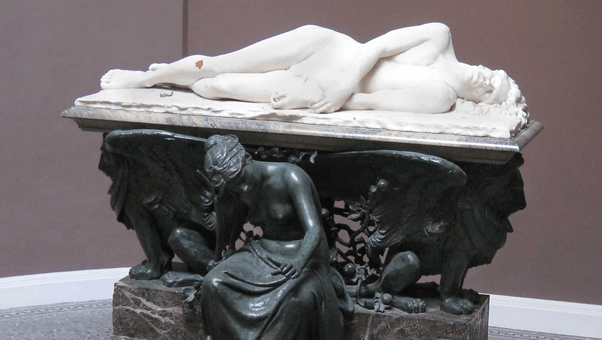 I think the idea of the Jungian ‘type’ of the puer aeternus is, like in my opinion much of Jung, overestimated in its usefulness in the analysis of the aetiology of sexual identities in this book.[6] Given that we all may rely pragmatically on under-theorised concepts sometimes in our lives the authors of this book can take this too far. Thus, when the authors recount David ‘Bunny’ Garnett’s comment in his diary that Tommy treated his mother, as he led her to a taxi, ‘as tenderly as a lover’, there is no excuse for the parenthetical authorial comment: ‘(This suggests that Tommy suffered from an Oedipus complex)’.[7] Sometimes I hope that there will be a day when even researchers and writers in the history of art (academic or otherwise), who tend to hang on to antique cognitions longer than most, will stop seeing a need to explain queer artists in terms of half-baked, badly applied and ill-understood psychological tropes. But, though I bristled at these poorly judged excursions into psychodynamic explanations of Tomlin’s sexual ontology, I think they are forgivable given their obvious naiveté and the lightness with which those concepts are worked into the overall picture of Tomlin the authors otherwise give. What appeals in contrast in the authors’ account of Tomlin’s creative and sexual development and the interaction between these features of the man are the close accounts of his experience, such as his fascination with the erotic shaping in stone of the figure of the Romantic poet Percy Bysshe Shelley in Edward Onslow Ford’s (named Henry rather than Edward by these authors) Shelley memorial at University College Oxford: