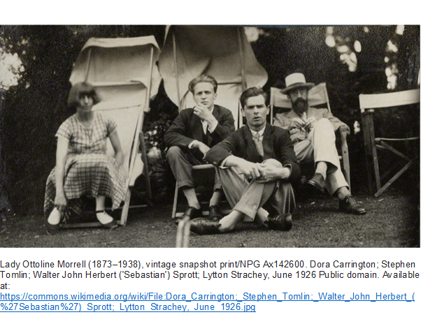 Likewise the acronym ‘P.A.’ (for ‘penetration anale’ presumably in the belief that the French terminology for ‘anal penetration’ sounded more Bloomsbury) in a letter in which Carrington repeats to Tommy’s wife, Julia, more salacious evidence of Tommy’s continuing aggressive sexual behaviour. Of course, the story is based on a lot of assumptions. Carrington writes of an operation to remove a ‘sentinel pile’ endured by Sebastian Sprott – the Cambridge psychologist W.J.H. Sprott – both appear with Tomlin in the photograph below by Lady Ottoline Morrell – because, she asserts, he has been led into this sexual practice by Tomlin: ‘I told Tommy what his great creed ‘of P.A. & nothing but P.A.’ had led poor Seb into. But he merely rubbed his hands at getting another convert’.[10]