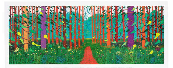The study of other temporal aspects of nature other than its ‘flow’ (and here the writers utilise the existentialist-phenomenological psychologist, Csikszentmihalyi’s (1975) ‘flow’ theory) are the stark basis of it in light, dark and shade variation.[18] There is too much that is too rich to develop here but it speaks through in the Normandy moon and garden works.[19] Instead I want to finish by looking at the treatment of the old disegno-colore paradigm (charcterising comparisons and contrasts in Renaissance painting but revisited in a different way by Fauvism). The genre that Hockney explores this in of course is ‘landscape’, that song of praise to space and time, and with only a slight reference to classical tradition and Beethoven’s Pastoral Symphony the literature and music of change.