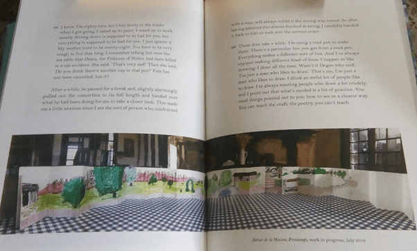 Now it is impossible without seeing the way the art works are represented in the space and time of the Royal Academy exhibition or, as a second best, in the concertina format of its catalogue (mine is ordered) to talk about how Hockney attempts to realise that. A page opening from Gayford’s book will show how impossible it is to illustrate constantly moving focus in a medium dominated by the idea of fixed focus that even attempts to persuade the reader of the temporal nature of the act of reading.