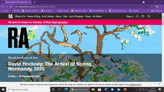‘If Winter comes, can Spring be far behind?’.[1] Waiting for the return of a long-awaited (and expected to be popular) art exhibition and the fate of those who wait. Reflections on art exhibitions and the substitutes for them in and after lockdown based on reading the 2020 translated novel by Catherine Cusset (translated Theresa Lavender Fagan) David Hockney: A Life London, Arcadia Books & Martin Gayford’s (2021) Spring Cannot Be Cancelled: David Hockney in Normandy London, Thames & Hudson.