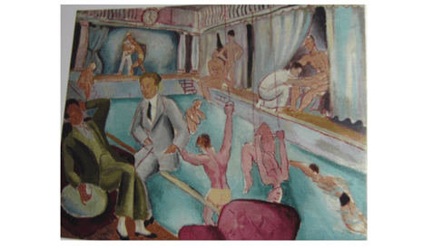 However, before looking at these pictures, completed in the year of his possible violent suicide, it’s important to see how and why Wood’s case is particularly suited to a queer theory approach. Extant criticism known to me plays games with labels – dubbing Wood ‘conveniently bisexual’ (whatever that means, it was said by novelist Anthony Powell cited Norris 2016:28[3]), mainly homosocial if sometimes homosexual, repressed gay man or an innocent perverted by a rich European homosexual clique or even the Parisian art-scene (perhaps especially Cocteau)). All of these labels come with some peculiarly nasty imposed value sets which reduce Wood to something lesser and stop us looking at his intriguing but very queer painted surfaces (even ones apparently not so such as Dancing Sailors, Brittany (1930)). Wood painted some very sensual female nudes and had several sexually consummated love affairs with women and he idealised the married love of Ben & Winifred Nicolson, although its bitter end was in sight before he died.
