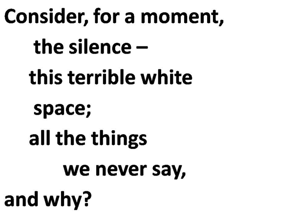 These essays are terribly urgent ones for readers ‘racialised as white’ (to use the term favoured by Sebastian Brown, one of Miller’s most appealing character types in the essay ‘Mr Brown, Mrs White and Ms Black’).[3] Without them too much will continue to be held back (‘withheld literally’) from the ways those ‘racialised as white’ of what voices ‘racialised as black’ (which Sebastian Brown likes because it includes his own and his mother’s brownness) are currently saying when they say ‘Black Lives Matter’. There is a need before more people die of the silence so characteristic of white privileged spaces. Read the wonderful poem with which the collection starts: