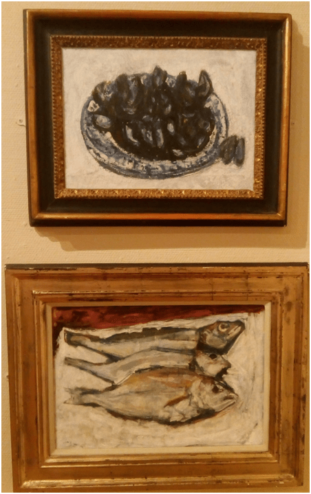 My photograph of Mussels on a Greek Plate (c. 1952) and Three Fish (1950) from the exhibition
