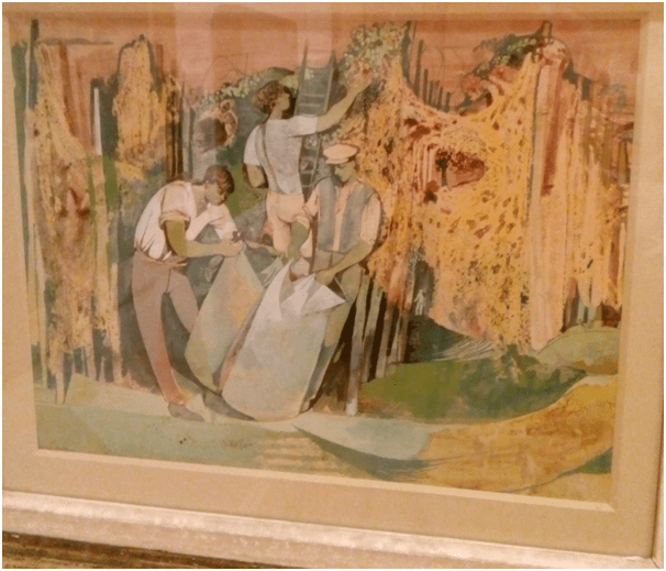 Minton in contrast was just queer, if often neurotic (as David Tindle says in the video). He painted his queer self and its projections.  I came out of this exhibition rejoicing in this artist, whom I have ever liked but not seen paintings of in the flesh in such quantity, because of this obviousness. Mark Brown’s review does not even attempt to laud Minton. He writes: ‘Minton is probably best known as an illustrator and the tragedy of a life he took in 1957’.[18] That’s not much to say about anyone. Yet there are some remarkable pictures here that speak of projections of queer desire that are open and honest, and many of my own favourites that are obviously not great paintings but icons of the appreciation of male beauty in male yes, such as the lovely Neo-Romantic piece, The Hop Pickers of 1945.