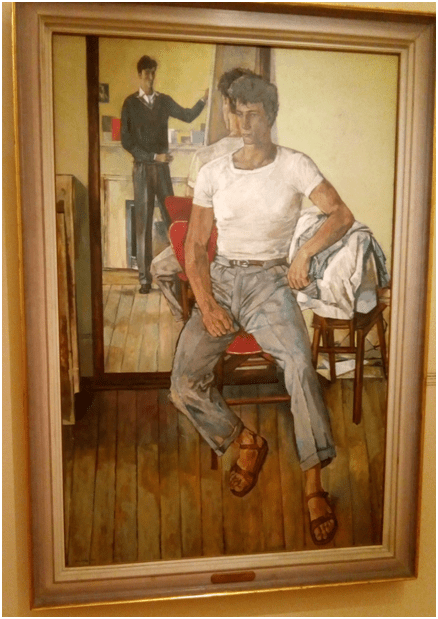 There is no admission of this ‘precious’ element in the catalogue as in the interview based on it by Brown, although we will continually see the relationship as most important in the lives of the bisexual men, both of whom had multiple relationships with women (Ryan had 3 wives but none of these constituted his most important relationship with a woman), had had children and had almost to rule treated women in their lives badly with Ryan often revisiting his liking for young men in affairs within his marriages. His second wife, Joan, felt his marriages broke on the rock of his ‘inability to be loyal, because he liked men’; though, it appears that Joan had also been attracted to Adrian’s first wife, Barbara.[5] Of Freud’s feelings about either loving or, more simply, sex with men, there is sparse evidence though his painting can speak volumes to some of us. Whatever, the issue, it is clear that Minchin gives more credence to the emotional lives of these bisexual men than he does to Johnny Minton, who is said to be involved mainly for sex and/or as a replay of his complex triangular relationship with that most infamous of post-war gay couples – ‘The Two Roberts’: The name given to the ubiquitous togetherness of the Scottish painters (and socialist nationalists) Robert MacBryde and Robert Colquhoun.