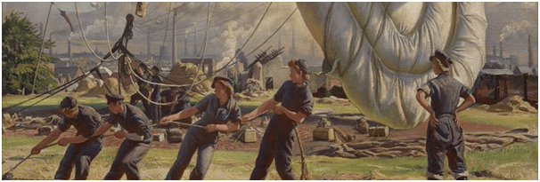 But I had a greater surprise. I originally went to this exhibition to accompany friends who have a great passion for the work of Laura Knight. It is not a passion I shared and, for me, the real revelation of the exhibition was my ability to connect to a figure I have (through prejudice mainly) associated with a rather grim and oppressive hierarchy of British art: a reputation of one who deliberately shut themselves off (as I thought) from innovations in painting and, instead, jealously guarded the conventional embodied in established institutions. I had known some of her work as a war-artist but before seeing it ‘in the flesh’ thought it merely very good Establishment propaganda. Of course A Balloon Site: Coventry, of which you see a detail below, is that, but seen in the right size, the industrial landscape comes through and painting seems semantically, as in other ways, richer.