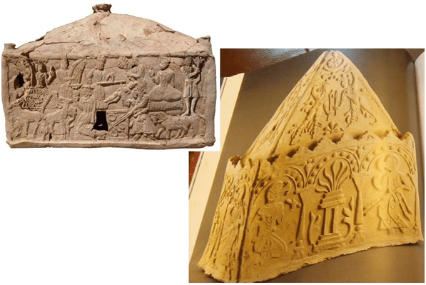 In fact I only had to read on further in the course to discover discussions of the evidence or attestation of the origins of the exposure of the dead as a Zoroastrian practice or to read Stewart’s illuminating chapter in the catalogue which traces reference to the dakhma tombs and the difference between the preservation of human remains in the practices in the Young Avestan text the Videvdad from modern practice. For instance bones from bodies from whom flesh had been consumed by carrion animals were in early practice kept in elaborate ossuaries, whereas in the instance in the photographs they were swept into a communal pit in the centre of the tower structure (see above). The relief illustrated ossuaries of the earlier practice are indeed a source of knowledge of early practices and beliefs about the judgement (weighing in fact) of an individual’s good against his evil deeds. But the answer to my question is that though there is little to attest to the practice in Iran, the absence of certain memorial evidence may still point to exposure of the dead and that the other evidence is from regions – the ossuaries are from Chorasmia, for instance, where they accompanied burial practices from other religions, as they continue to do in the Islam of the modern Chorasmian region (Grenet 2013: 98).