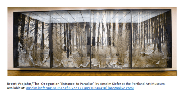 ‘We all profit from him, from / his so-called soteriological instincts’, sings the Chorus twice in this play about how a man who claims to be our benefactor or saviour can also often just be used as a means for those defending the ‘status quo’ to ‘profit’ them, as they profit from other commodities. We can blink at the violence in, for instance, Anselm Kiefer’s forest landscapes, sometimes an image, as Simon Schama shows, of how the German nation, in accepting Hitler as a saviour, forgot the violence feeding the forestation he promoted – a belief the Chorus anachronistically cite: