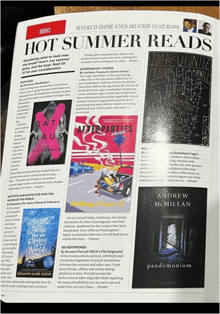 As usual, reading back I think I overstate the case. One only has to read Andrew McMillan’s poetry again, from any period of his career thus far, to see that He never runs away from those labels (“a poet of the body, or queer male desire, or masculinity”) he nevertheless says he would prefer not to be definitive of everything his poetry does. For this poetry proceeds from a place where body, masculinity, and queer male desire are all definitive subjects that interact with the other purposes fulfilled by a poem. But these purposes are legion and not somehow more limited when used in a poem on these subjects and therfore need recognition than being made invisible by a label.