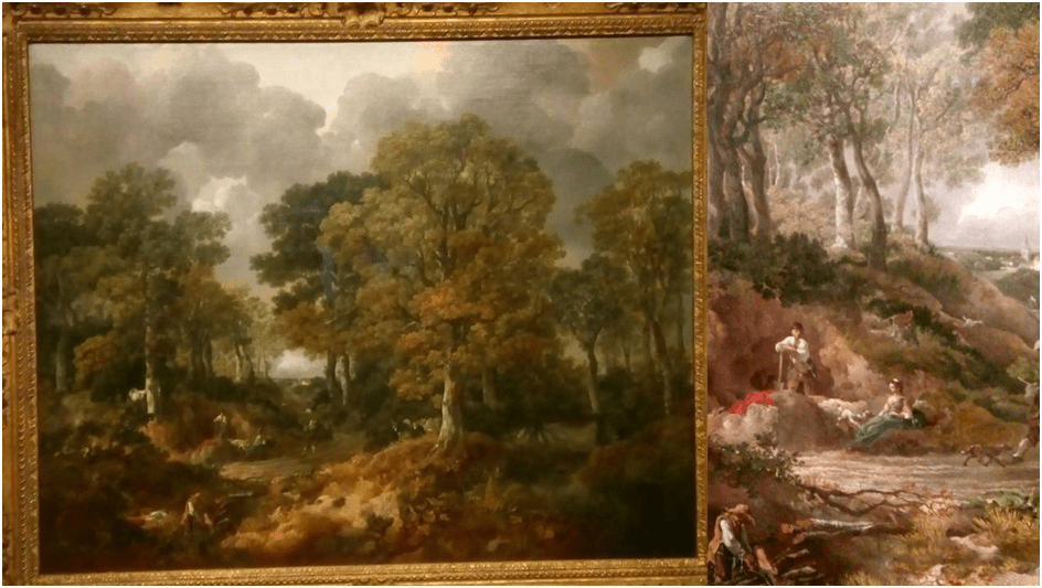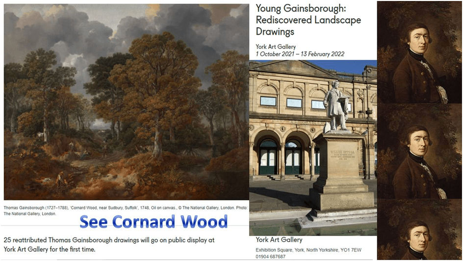 Indeed what York curators have leapt upon is not a modish approach to the innovation that led to us seeing Gainsborough as at the beginning of a new tradition of landscape painting, which is indeed how a later Suffolk artist and admirer, John Constable, saw him.[3] This tradition originated in Gainsborough’s blending, they claim, of direct observation of material directly from nature, drawn en plein air as it were, and the artifice of studio composition that meant his landscapes were necessarily manipulated to form coherent designs as painting – were, as we might say, compositional wholes.
