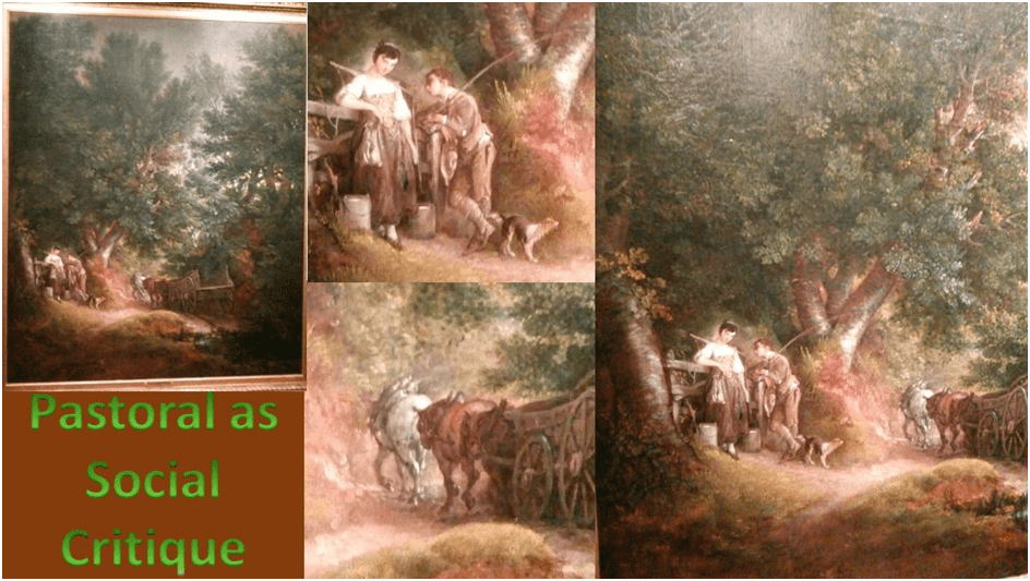 That Gainsborough projects his feelings and situation into the situation of a pack animal pulling a drover’s cart is no accident. His letter expresses in a pastoral conceit his desire to ‘paint Landskips’ as a means of escaping powerful persons, especially (since his sexism cannot be avoided) powerful women: ‘fine ladies and their Tea drinkings, Dancings, Husband huntings and such’.[11] Pastoral of course, as Asfour and Williamson remind us by citing Frank Kermode (then the major figure in British literary criticism), is primarily ‘an urban product’.[12] The model is one inherited from the culture of Greece and Rome and especially the Georgics of Virgil but imported into British culture by Spenser and Milton amongst others as a means of articulating a revolt against the ‘luxurious and demoralised city-dweller’, court or government. The habit of critiquing power, wealth and status at the higher levels of hierarchies often went as far as investing the values involved in a return to nature and an agrarian economy in the lives of animals.