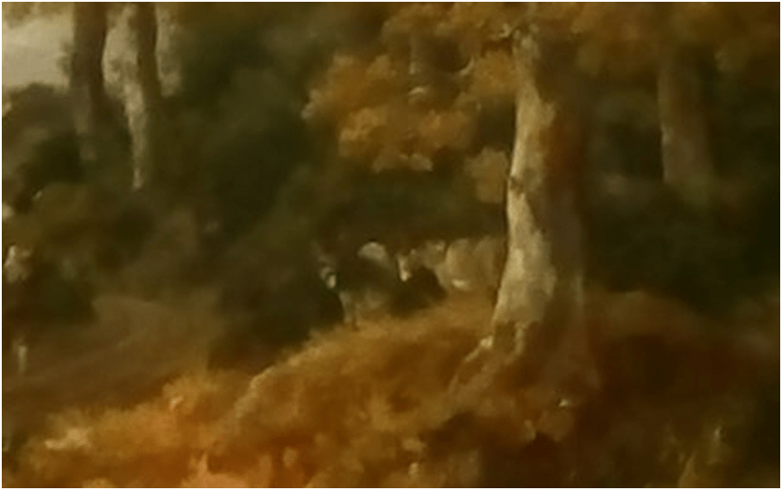 What we see here is a highly determined view of the common demographic base of a society in a common land (already threatened by enclosure) populated by common types and activities with animals that shared their owner’s lowly lives. But the central focus is the distant community and its very visible church. Indeed Asfour and Williamson say the traditional role of the forest as a symbol of confusion and moral disorder (as in Midsummer Night’s Dream) is paradoxically put in the ‘background’ ethically by a distant but clear view of (or indeed ‘a point of focus’ on) the church, to which a path wends its pilgrimage.[10] But I think, and will go on to explore further that these authors interpret these design features in the creation a whole painting in far too politically and perhaps religiously a conservative way, in precisely the way John Berger was questioning.