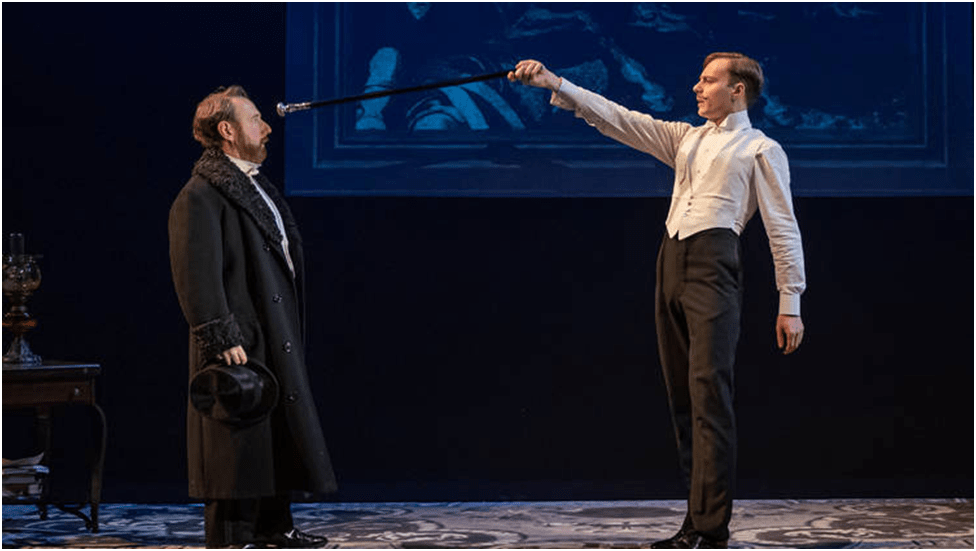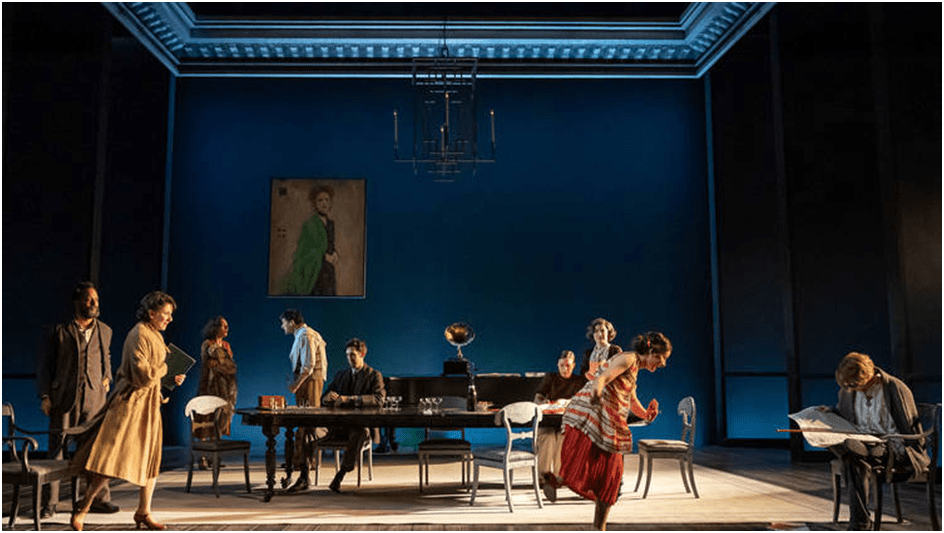 Much is made in the reviews of the personal nature of this play, given that Stoppard discovered the full extent of his Jewish origins only in the 1990s and his links to a family very like the Merz family. The director of the play, Patrick Marber, in a prologue to the live-streaming of the play noted that, as a director, he did not pursue Stoppard for a personal story however and stuck to the narratives and their potential within the text. Of course a produced play is more than text and Stoppard chose Patrick Marber, a writer himself who had first produced Travesties, out of professional respect, as revealed in the same source. Marber has added enormous value to the play together with his collaborators. For instance a semi-transparent gauze screen is used sometimes to semi-obscure the scene and mark, by projecting the numbers onto it, the vital changes of date in the play as family members age and/or die or the characteristics of the society in which it exists (and is defined) and its politics changes. And onto this screen images are projected.