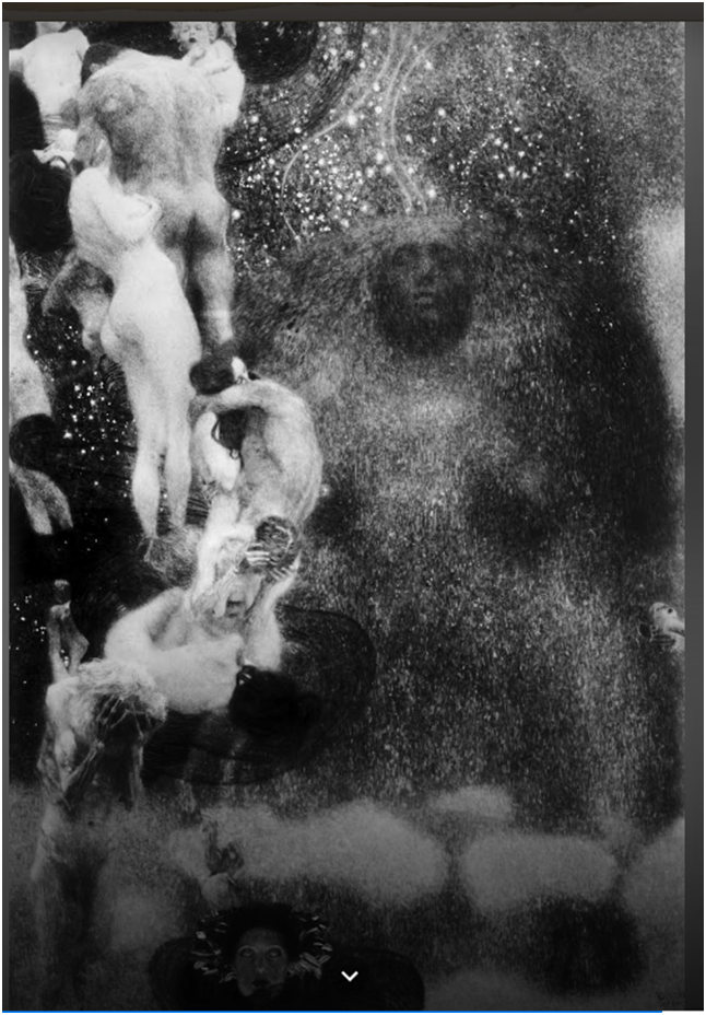 But Klimt is also characterised by his ability to shock the Austrian bourgeoisie, Jewish and non-Jewish, by ‘supporting art which decent Austrians found nonsensical and offensive’, much as Freud thought Arthur Schnitzler also did.[15] Ernst in referring to Freud’s escape to London says: ‘I thought Freud was on to something from the beginning. The evidence was there to see, in the work of writers and artists. … – do you remember Klimt’s ‘Philosophy’ painting?’[16]