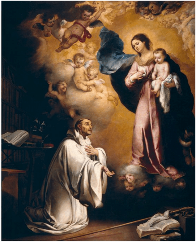 Only in Imperial Spain and the Counter-Reformation I think would this play with artfulness and reality bring us back to a metaphor of being fed, so that feeding and poverty are not just real events but also metaphors of being fed from a superior being to whom we are all ‘Poor’. It all depends on the Baroque tendency to conflate all good with what is offered from the superhuman and its avatars, such as the Church and Imperial State. It demands, which is my point, the creation of an apparently solid reality amidst a transcendent visionary space and is one reason that the Baroque erupts from the frameworks it also observes. Stoichita traces some versions of the Lactation myth (especially one earlier than Murillo’s virgin at the Hospital de san Bernado at Seville by Juan de Roelas) to this text from Saint Bernard – pure fare for the Counter-Reformation elevation of Mary;