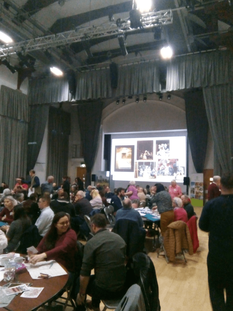Whenever you go to works conferences someone is sure to have a ‘fun’ idea to get people involved. in this one each table had to chooses a painting from a group in a packet to represent their table. Though I love the painting, I would not have chosen that one. I favoured a modern semi-abstract reimagination of Pit Gear by John Luke, which I think has been newly acquired by the Mining Art Gallery, a vote settled it. The presenter then asked the table groups to work on a representation of the artwork using varied resources provide – such as coloured plasticine or basic designs intended for colouring in. It was never clear how collaborative this effort was meant to be but it fell foul of many adults of my own generation or younger unused to being asked to work in this way – in the end such ideas always will requiring much more understanding of the greater resistances to creative free expression in adults and the preparation involved. Hence each person did something of their own with varying commitment and unresolved issues of trust with both group and task. It will always be thus when educators uses pedagogies aimed at young children with older people.
