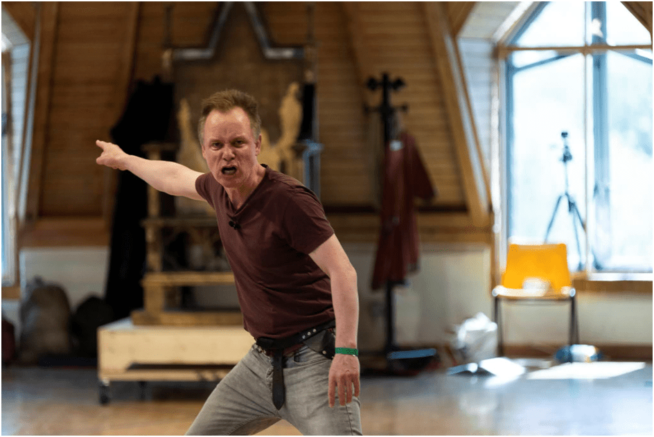 And the Director emphasises this more by some clever casting of powerful women in the role of powerful men, such as the Duke of Somerset (the red rose Duke), the Duke of Burgundy – ally of England until ‘bewitched’ by Joan of Arc – and Reignier, who finally abandons the Dauphin in the interests of his own county lands) and his daughter, Margaret’s marriage prospects. These men are played brilliantly by Mimî M Khayisa, Anna Leong Brophy, and Marty Cruickshank respectively. This also means that a man who in jeans and trainers does not look Herculean or martial in body shape such as Jamie Ballard, really convinces as Talbot and deepens the meanings evoked around gender expression with the power of performance and direction alone.