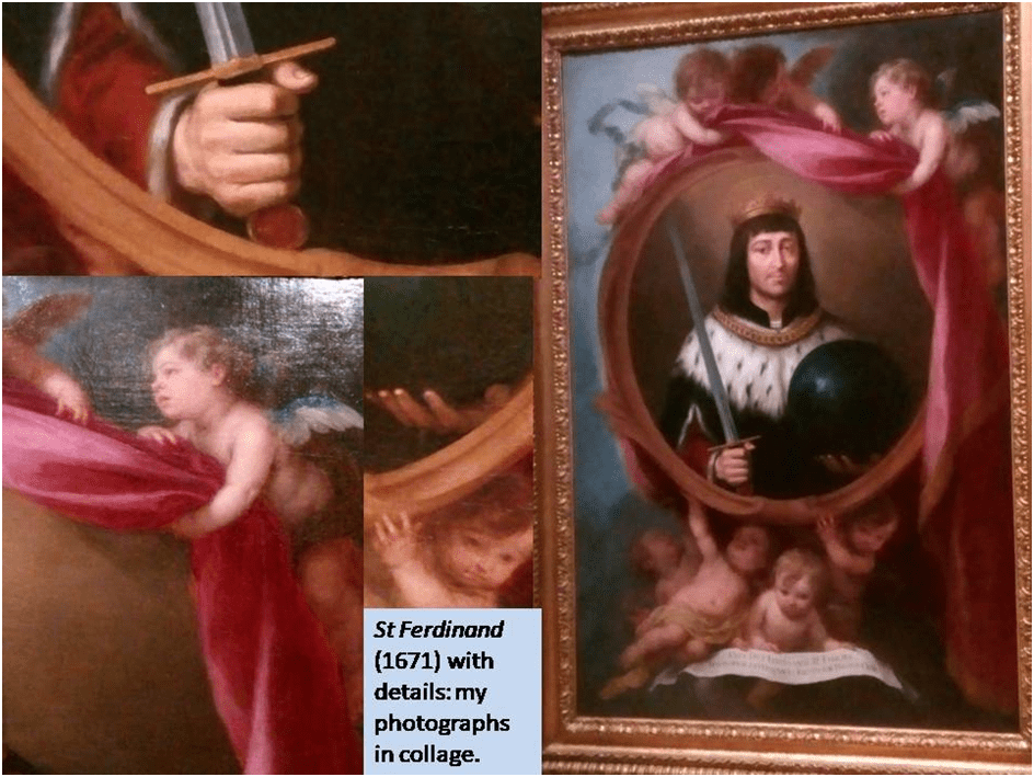 This explains the passion of Hapsburg James IV for the canonisation of Frederick III. On the success of that campaign an idealised portrait of the warrior – king, co-opted into Philip’s ancestry, was commissioned from Murillo, in a painting near to the putative Pacheco in the Gallery together with the book bearing a print of the ‘same’ image. The issue here was to make myth and its iconography seem real by trompe l’oeil effects and I have already written about this in an earlier blog.
