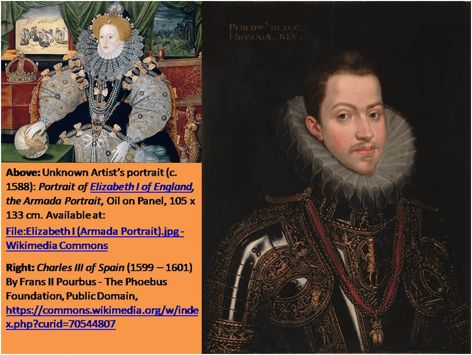 By the time of Philip III monarchy in Spain might look for models of centralised power in its own assertive and over-riding control of its own Empire rather than to Empire as a trans-national ideal, of which Charles V was the last adherent. A case in point was England which, in the hands of Spenser, nationalised (and Brexitised) the notion of unity of divine right over territorial acquisitions in Ariosto. Philip II saw England as an arch-enemy but England became under Philip III to be looked at with envy in places where monarchical power served aggregate kingdoms and colonies, as in Spain and the Holy Roman Empire. The Duke of Lerma who controlled Philip III’s governance of Spain until his eventual disgrace, for instance, owned a portrait of Elizabeth I and introduced its modus operandi (‘ever-youthful mask, white face, lack of shadow, and form reduced to decorative shape as pattern’) into the iconographic representations of the individuals running the business and show of the court of Philip III: ‘remote and stiff reserve, the glittering display of finery, and archaic formalism’ that ‘turn the human being into a cult image’.[15]