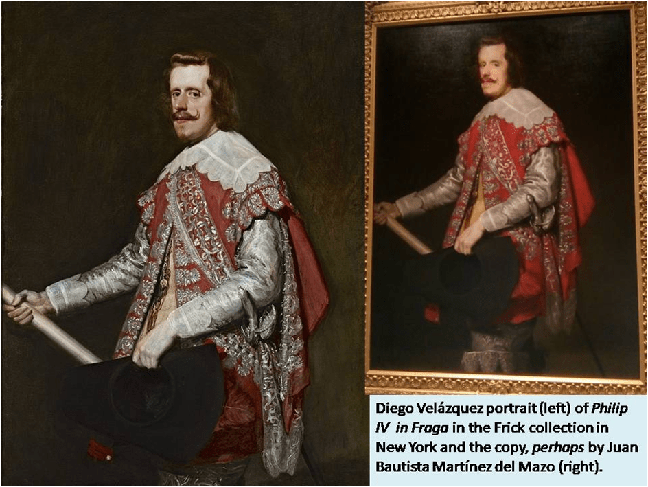 The Dulwich copy now on loan in the Spanish Gallery is sufficiently good to see these effects and its details are as evocative of the folds of clothing and the effects of pressure by objects on such folds to really help us not to miss as much as we otherwise might the original in the Frick collection.