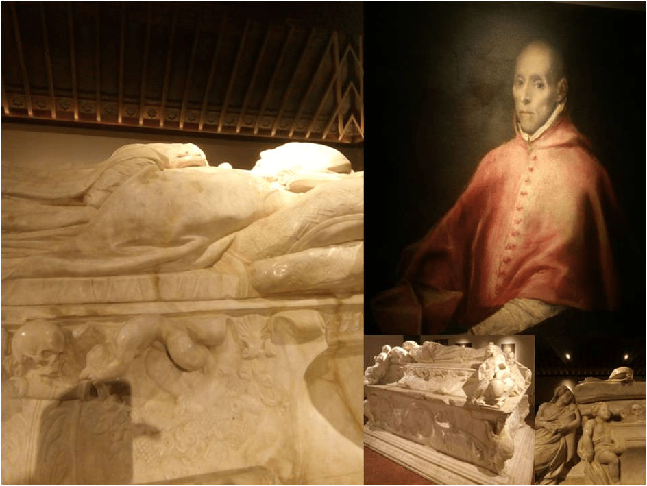 We can start with that Catholic Church clerical men. Certain examples are hardly distinct from either kings or saint paintings and sculptural portraits in their idealisation to an idea. However, in the hands of genius, their idealised body often becomes a burden on the man trapped within as I would argue was visible (poor subjective me) in both, respectively a painting and supine tomb statue, by El Greco and Berruguete of Cardinal Tavera. Digital facsimiles of each are found in on the 4th floor of the Spanish Gallery (see below).