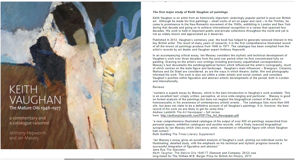 [5] Ian Massey (2012) ‘Walled Gardens: Keith Vaughan paintings 1946 – 77’ in Anthony Hepworth & Ian Massey Keith Vaughan: The Mature Oils 1946 – 1977: commentary and comprehensive catalogue Bristol, Sansom & Company Ltd. 8 – 40.
