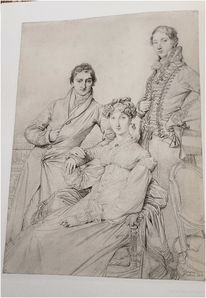 This matters to me because it investigates the implications raised by Hockney about how oppressive political power is either replicated or challenged by art, and does so in ways that are true to what Ingres may have used optical devices for and its political effect (if Hockney is correct). Hence it is also about how the modern artist used that ‘knowledge’ to find skills as an artist that would challenge that political effect in ways that are critical of oppression. Hockney deduced that Ingres’ style as a portraitist was based on the use of a camera lucida, despite the lack of documentary evidence for that.[18] (Ingres’s portraits were of the privileged classes of Europe who beat a path to his studio door). Munro’s extended account of the Hockney argument is comprehensively researched, beautifully narrated and convincingly applied. It turns on the usual justification for the use of a camera lucida in collecting details of the proportions of one’s model as a figure in the painting. It ‘allowed the artist to achieve a pleasingly “uniform scale”’.[19] Uniformity in the proportion of figures in portraits was of great value to sitters in the early nineteenth-century, who would pay higher prices as a result based on the relative proximity it allowed for having a full-length figure. Whilst Hockney does not suggest that the accuracy of Ingres uniformity of figure could not have been achieved without an optical device, he and Munro seem convinced that it would have been used, given the speed of initial sittings with the socially prestigious models, not to achieve his artistry but to ‘position key facial features’ (and other features) before completing artfully using direct observations.