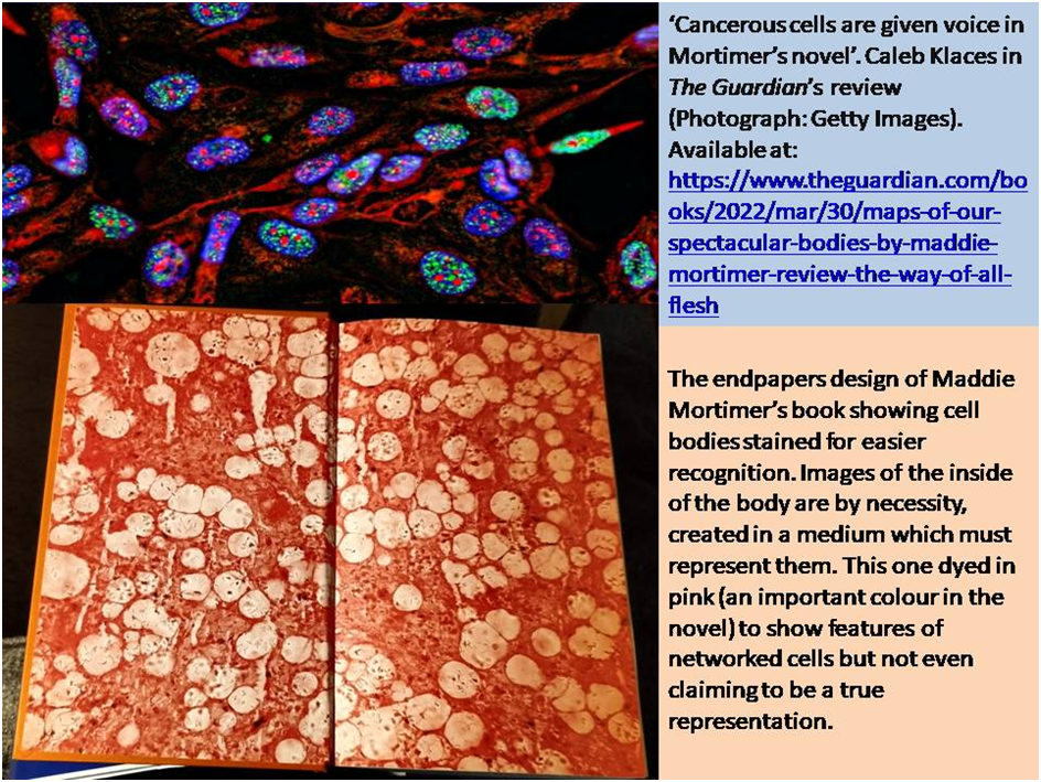 There are easy ways of showing this is so without further work on the painful material of this novel and the sources that the author has hinted come from materials metamorphosed from parts of her own life experience. Even visual representations in medical and anatomical representations may pretend to show realities but are in fact governed by agreed conventions of colour coding (or even ones to create the effect of the internal drama of the process – say of the occupation of space that should be held by healthy cells by ones that are ‘cancerous’) that bears no relation to what the depicted anatomical and micro-anatomical features actually look like, as in the following example ( I gained something then from my OpenLearn course on Medical Imaging).