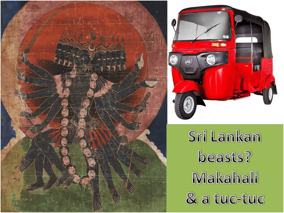 However, Gazala Anver, the deputy editor of one Sri Lankan online review publications, roarmedia, insists that some of this horror, with its reference to common Sri Lankan folklore and mythology, can limit the novel’s interests to its ‘local’ Sri Lankan context . This stress on the ‘local’ though seems somewhat stretched to me since the folklore and mythology addressed often has resonance across South East Asia, such as that of the Mahakali, for instance, which is traditionally associated in Tantric and other sources with time and death. This association explains why, in this novel, she performs this function only in the timed duration (seven moons) allowed for ghosts to inhabit the ‘In-Between’ with its direct and physical partial-connection to their lost lives before their whole lives are absorbed into the Light of timeless oblivion. It explains too her vast hunger and the heads of the eaten ghosts who speak so wittily, sometimes (but always in a riddling way) from within her ever expanding flesh.