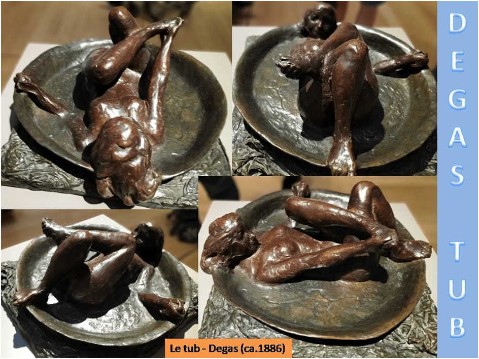 This density of approach which seeks ideas of submerged depth and the weight of the bodies of stuff is more obvious in Degas’ Le Tub (c. 1886) which involves the viewer in the search for perspectives, and plays with the boundaries of the work of art.