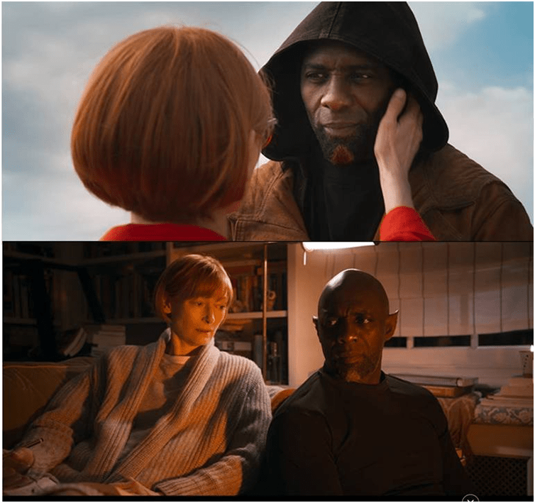 Film and story are different art forms and we should not expect a film to replicate the effects, even of meaning, of a book, and therefore Lane is useful here in helping us to do this. However, we perhaps also should not expect genre categories to determine what is good, bad or indifferent in any film or story, for the best of both bust genre containers open and release something new. What unites the two versions is I think an interest in the imagination of what modernity does to notions of space and time, both in the availability of air travel for all (and not just supernatural or imagined beings) or the conveyance of messages in fragments of data whether in radio or audio waves or the digital. In the film Idris Elba is confused by messages in the air waves (and a receiver aerial appears in the background of one conversation in an English garden).