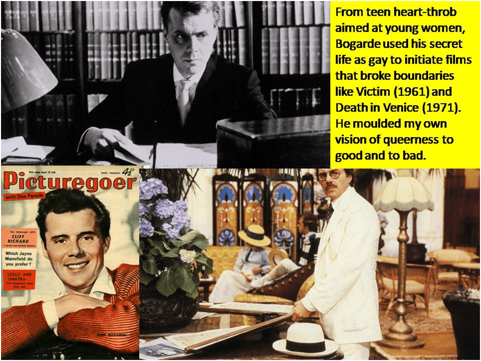 Sometimes there is a reason for adopting a persona or even multiple personae as suggested by Allen. The narrator invents Rebecca ostensibly to find out more about her sister, Dorothy / Veronica, without arousing Braithwaite’s suspicions, although she succeeds in doing precisely the opposite. It is the vocation of the actor and writer and even the reputation seeker like GMB. The classic example in the novel being Dirk Bogarde, in order to understand whom Braithwaite invokes Camus and French existentialism: ‘“It was a relief,” Bogarde told a friend, “to be told it was all right not to constantly ‘be yourself’; that it was fine to be your own doppelgänger”’.[14] Yet Bogarde is attracted to this idea too because of his open-lived queer sexuality. It is Bogarde who leads Braithwaite to argue that ‘all queers are actors’.[15] The fictional book by Braithwaite is based on the notion that completed suicide is so often conflated and confused with the theory that we must ‘escape the tyranny of the fixed, immutable Self’.[16] It is this conflation that troubles us. Is Veronica’s sister actually Veronica herself? The novel deals then with all kinds of reasons why there is a genesis of secrecy at the root of narrative (as Frank Kermode suggests) – but most notably to imply that the interest of narrative is that which, precisely, is hidden in the text, rather than offered up on its surface, sometimes a whole filing cabinet of them.[17]