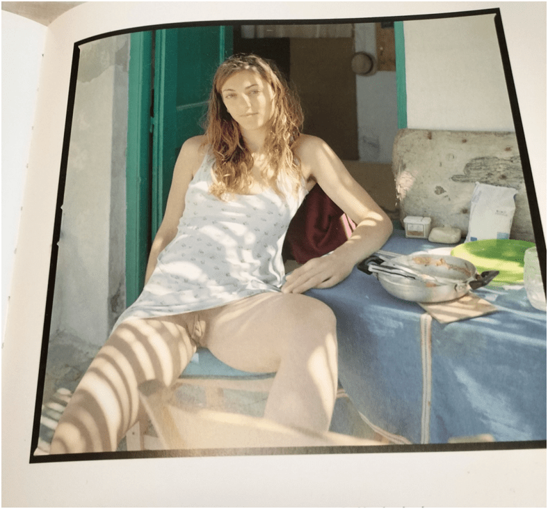 Of course, it’s all ‘common knowledge’ but the word ‘common’ is precisely the marker culturally for topics that should not be made public without consequence of typing the speaker as themselves ‘common’, as not being of a certain class. Indeed this is bourgeois culture’s display rule number one. Being ‘common’ is a putdown used to type class, gender and racial-cultural norms. These are just some of the factors that complicated the display by Panayiotis Lamprou of his photograph Portrait of my British Wife in 2011 in the National Portrait Gallery. For this wife (and how cunning of Lamprou to name her as ‘British’ as one in the eye of a nation that likes to see itself as famously reserved) sits casually at a Greek breakfast table, and, as if accidentally, displays her vagina. As Borzello writes in the text and caption respectively to her illustration of this image: ‘Our comfort with it as a portrait of a beautiful woman is disturbed by the shock of what she displays’. [5]