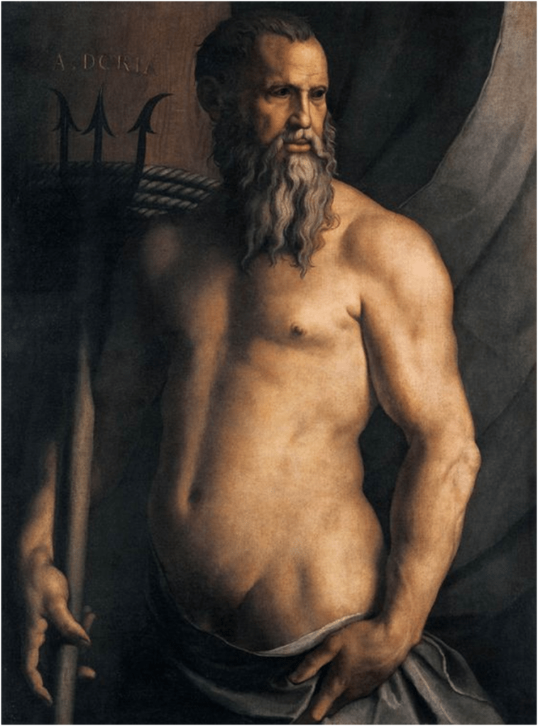 Agnolo Bronzino’s c.1530 portrait of Andrea Doria as Neptune. Available at: https://www.pinterest.co.uk/pin/547468898423909850/