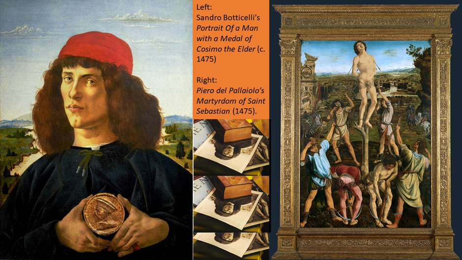 Reproductions available online: https://smarthistory.org/botticelli-portrait-man-with-medal/ (Botticelli), https://commons.wikimedia.org/wiki/File:Antonio_Pollaiuolo_003.jpg (Pollaiuolo).