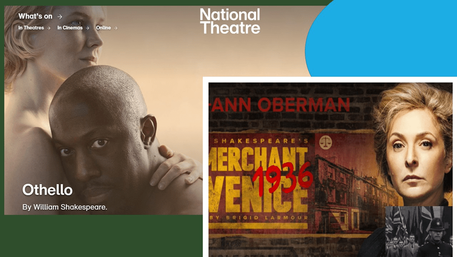 The ‘Elephants in the Room’: racism in the British artistic ‘heritage’. This blog written to prepare me to see new productions of Othello (National Theatre Live streaming 23 February 2023 at Gala Theatre Durham) and The Merchant of Venice (Watford Palace Theatre tour at Home theatre, Manchester 16th March 2023).
