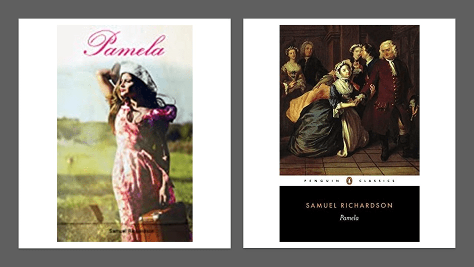 Amazon, and especially Kindle publication, embraces this ‘honest’ appeal to the ‘imaginative needs of the community’ however narrowly the idea of ‘community’ is circumscribed even down to the limitation of audience size proclaimed in the idea of feminist female readers. For Kindle has its own cheap, sometimes free, versions of the range of literature we might call ‘the classics’. In advertising these, it oft uses imagery that remarry them to popular romance – even erotic forms more rarely – by emphasising marriage into wealth and the control of male power. Hence, I use in the illustrative collage above the examples of classic novels in their pictured Kindle covers. His house or his lands sometimes substitute for his dominant look; that look often directed downwards, at the heroine. See, for instance a comparison with the way the Penguin Classics series sells Richardson’s Pamela compared to the Kindle version, which conveys a boldness about Pamela herself that rather obscures the vast class and power differentials in the eighteenth-century novel (although that both are available through Amazon is important).