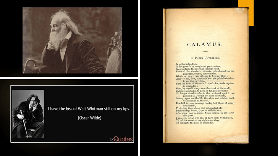 A deeper version of the theme is the omnipresence of Walt Whitman, with whom Edward Carpenter, in this claim true to history, claims he had had oral sex in the most charming yet, to me unfortunately (in public at least), cringeful description of oral sex between men I have ever read: ‘I drank him up, swallowed him down, and went to sleep in his arms’. To which John asks: ‘What did he taste like?’[18] Some people, at least, feel that some questions you are not supposed to ask (perhaps all of us when they touch on the most suppressed of our unspoken desires and fantasies). And Whitman is at the centre of the novel too not only because he tastes ‘Sweet – like age’ but because he fears those ‘natural’ urges that he dare not speak, and perhaps does not entirely know, about his desire, which is not only that he feels sexual love towards men. Crewe tells us that Addington, reading Whitman’s poems, ‘hesitated’ over this one: