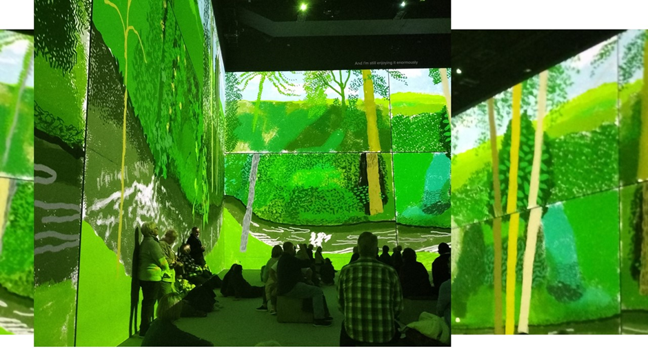 And we have to readjust our values if we are not to fall into the Jones type. Here is on the Lightroom’s first show created on and by Hockney in collaboration with others, where talent derived from film, theatre, and storytelling (and even popular teaching) genres and modes of discourse and display are mixed to incredible effect. Let’s hear Jones, as he elaborates on his one-trick of an idea that this show is an example of modern ‘kitsch’ feeding off populist successful immersive shows on Van Gogh and Monet of the recent past: