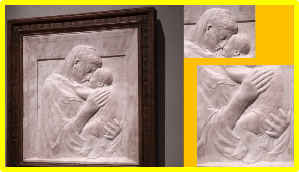 My photograph of The Pazzi Madonna (1420-5) by Donatello and details of the same.