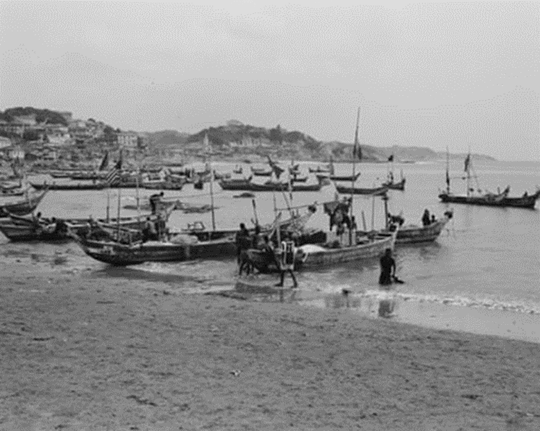 The discovery by Stephen that his homeland, or perhaps even ‘home’, community is using the seas in a different way from the slavers of the distant past might seem, just as it did Tennyson, to facilitate a response inimical to what might be thought to be conventionally masculine. Duerden’s aside about tears is perhaps dependent for its effect on a kind of super-macho distaste for males who shed public tears. It seems, to me at least, all the more based on a personalised ‘be a MAN’ response in the light of the fact that Azumah Nelson told Tom Lamont that, on working through with his therapist the adolescent experience that primed this novel, ‘Unexpectedly, he ended up in tears’. And perhaps this should be the responses evoked by the impact of historic experience of male suffering on his current emotions. Indeed Nelson shared a photograph he took of the contemporary Ghanian coast with Tom Lamont in that interview, precisely, we might think, to make this point. “Being there, I felt heavy with emotion – but there was also something beautiful about seeing the people there just living their lives, fishing, existing”, Nelson reported to Lamont for “(c)enturies ago, the Door of No Return, Ghana, was where you lost your name before being loaded on to a slave ship.”’ I, at least, am not prepared therefore to call either Stephen or Nelson’s tears ‘idle tears’.